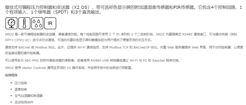 VECTOR 壁挂式控制器SRD2-THP-411.103